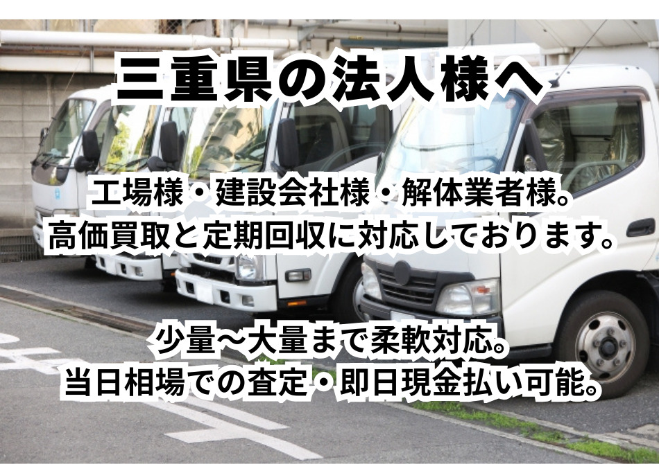 三重県の法人様へ 高価買取、定期回収承っております!詳しくは三重県法人様向け買取ページへ